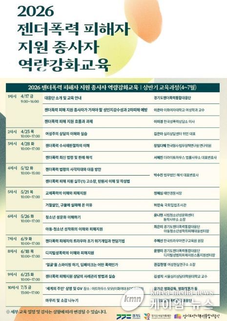(케이엠뉴스) 경기도와 경기도젠더폭력통합대응단이 17일 도내 젠더폭력 피해 지원 현장 종사자들의 전문성 향상을 위한 ‘2026 역량강화 교육’ 상반기 과정을 시작하며 현장 대응력 강화에 나섰다.