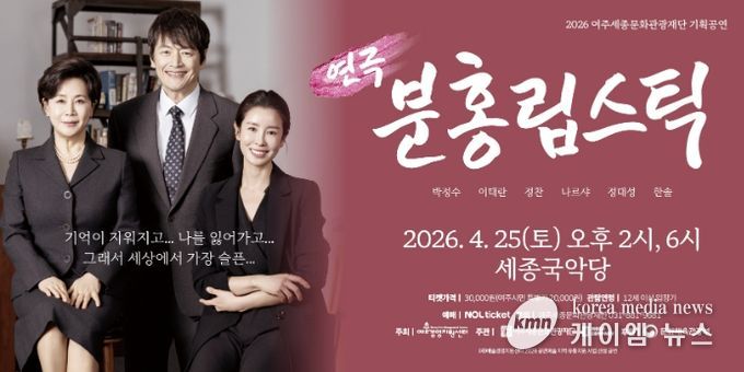(케이엠뉴스) 여주세종문화관광재단이 오는 4월 25일, 예술경영지원센터의 공모사업인 '공연예술 지역 유통지원 사업'의 일환으로 베테랑 배우들이 참여한 창작 연극‘분홍립스틱’을 세종국악당에서 개최한다.