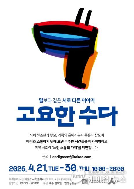 (케이엠뉴스) 안성시 시옷갤러리는 오는 4월 21일부터 4월 30일까지 자폐 청소년과 그 가족이 함께 참여하는 전시 《고요한 수다》를 개최한다고 밝혔다.