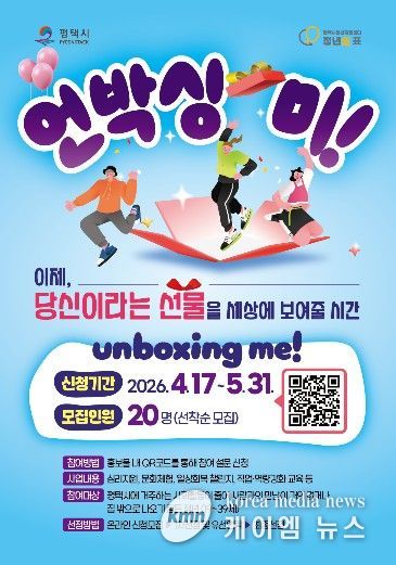 (케이엠뉴스) 평택시 청년지원센터는 4월 17일부터 5월 31일까지 평택시에 거주하는 사회활동이 줄어 사람과의 만남이 거의 없거나 집 밖으로 나오기 힘든 청년의 일상 회복과 사회 참여 촉진을 위해 실시하는 지원사업 '언박싱 미!' 참여자를 모집한다.