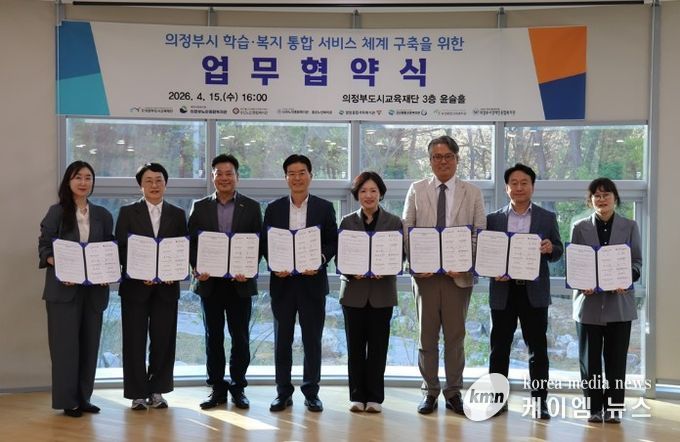 (케이엠뉴스) 의정부도시교육재단은 4월 15일, 관내 7개 복지관과 함께 ‘의정부시 학습·복지 통합 서비스 체계 구축’을 위한 업무협약을 체결했다.