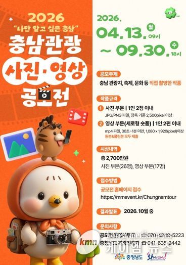 주요 홍보 내용은 △시군별 대표 축제 및 체험형 관광 프로그램 △2025∼2026년 충남 방문의 해 △2026 태안국제원예치유박람회 △충남 대표 관광명소 및 계절별 추천 여행지 △자연·휴식·미식 관광자원 등이다.