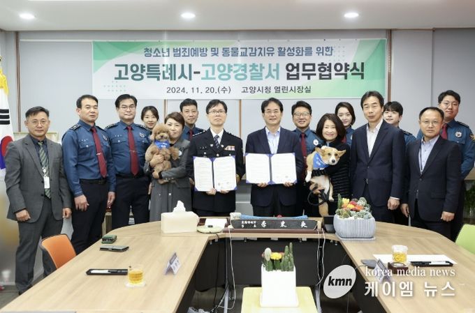 시는 2024년 고양경찰서와 협약을 맺고 전국 최초로 청소년 선도 프로그램에 동물교감치유를 도입했다. ‘마음 뿜뿜 펫 캠프’는 매주 수요일 동물교감치유센터에서 운영되며, 지난해 30명 이상의 청소년이 참여해 정서 안정과 범죄 예방 효과를 동시에 거두고 있다.