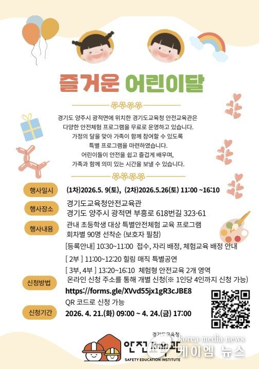 (케이엠뉴스) 경기도교육청안전교육관이 가정의 달을 맞아 가족이 함께 참여해 안전의 중요성을 쉽고 즐겁게 배울 수 있도록 ‘가정의 달 안전교육 특별 프로그램’을 운영한다.