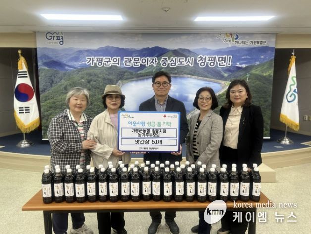(케이엠뉴스) 가평군농협 청평지점 농가주부모임이 20일 지역 내 어려운 이웃을 위해 직접 만든 맛간장 50개를 청평면에 기탁했다.