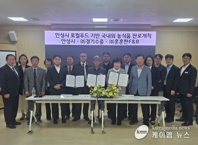 (케이엠뉴스) 안성시 농업기술센터는 지난 4월 17일, 안성시 농특산물 및 농식품의 국내외 판로 확대를 위해 ㈜경기수출, ㈜훈훈한F&B와 전략적 업무협약(MOU)을 체결했다고 밝혔다.