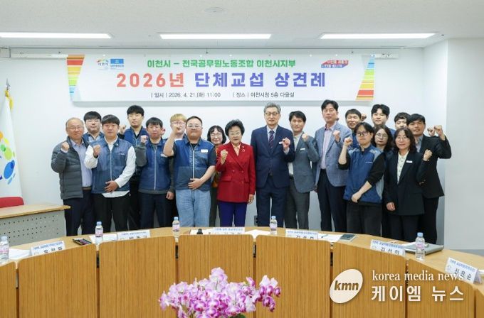 (케이엠뉴스) 이천시와 전국공무원노동조합 이천시지부는 4월 21일 시청 5층 다올실에서 노사 양측 대표 교섭위원인 김경희 이천시장과 이재인 공무원노조 지부장 등 노사 양측 교섭위원 20여명이 참석한 가운데‘2026년도 공무원노조 단체교섭 상견례’를 가졌다.