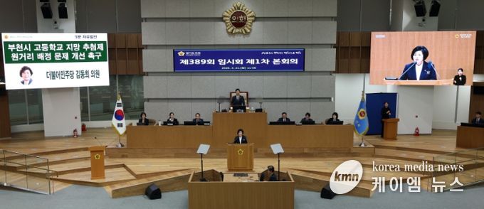(케이엠뉴스) 경기도의회 여성가족평생교육위원회 김동희 부위원장(더불어민주당, 부천6)은 제389회 경기도의회 임시회 제1차 본회의 5분 자유발언을 통해 부천시 고등학교 지망 추첨제 운영 과정에서 발생하고 있는 원거리 배정 문제를 지적하고 제도 개선을 강력히 촉구했다.