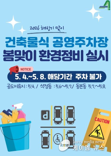 세부 정비 일정은 ▲공도저류지 공영주차장(5월 4일) ▲석정동 공영주차장(5월 6일~7일) ▲동본동 공영주차장(5월 7일~8일) 순으로 진행된다. 공단은 청소 및 시설 보수 시간 중 발생할 수 있는 안전사고를 예방하기 위해 해당 기간 주차장 이용을 일시적으로 제한한다.