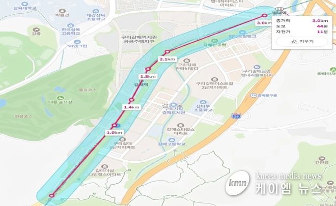 (케이엠뉴스) 구리시는 수도권 광역급행철도 GTX-B 개통 이후 경춘선 선로의 철도 운행 횟수가 많이 늘어날 것으로 예상됨에 따라, 갈매동 일대 경춘선 선로 주변 약 3km 구간을 '소음·진동관리법' 제27조에 따라 4월 22일부로 교통소음(철도) 관리지역으로 지정한다고 밝혔다.