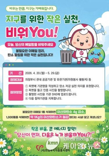 의정부시자원봉사센터 정진선 센터장은“일상에서 쉽게 실천할 수 있는 작은 행동들이 모여 큰 변화를 만든다.”며,“이번 캠페인을 통해 많은 시민들이 탄소 저감 활동에 관심을 가지고 적극적으로 참여하길 기대한다.”고 전했다.