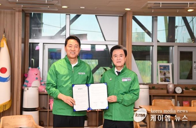 김태흠 충남도지사는 22일 서울시장 집무실에서 오세훈 시장과 ‘태안국제원예치유박람회(태안박람회)와 서울국제정원박람회(서울박람회) 성공 개최를 위한 업무협약’을 체결했다.