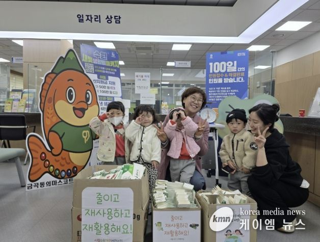 (케이엠뉴스) 수원시 권선구 금곡동 행정복지센터는 지난 22일 오전 10시, 행정복지센터 민원실에서 시립수원가온어린이집 원생 10여 명이 참여한 ‘금곡이가 알려주는 재활용 놀이터’ 체험 행사를 진행했다고 밝혔다.