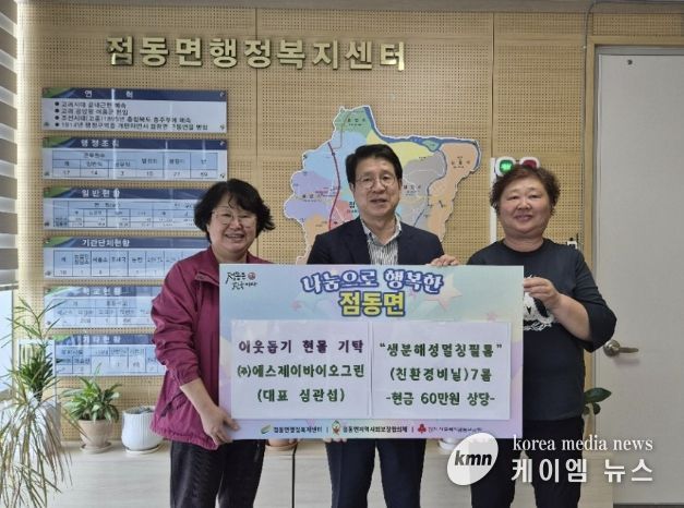 (케이엠뉴스) 점동면지역사회보장협의체는 오는 2026년 5월 6일 추진 예정인 '행복텃밭, 고구마 심기' 사업과 관련하여 ㈜에스제이바이오그린(대표 심관섭)으로부터 친환경 비닐 7롤(환가액 약 60만 원 상당)을 후원받았다.