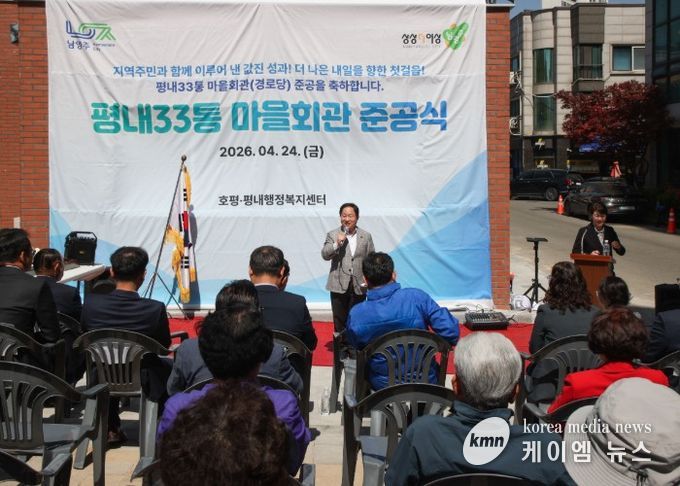(케이엠뉴스) 남양주시는 24일 평내동 588-19번지 일원에서 평내33통 마을회관 재건축사업 준공식을 개최했다고 밝혔다.