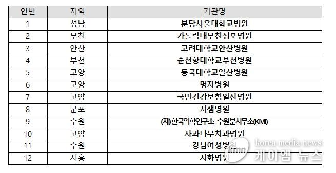 대표단에는 분당서울대학교병원, 가톨릭대학교부천성모병원, 고려대학교안산병원, 순천향대학교부천병원, 동국대학교일산병원, 명지병원, 국민건강보험일산병원, 지샘병원, (재)한국의학연구소(KMI) 수원분사무소, 사과나무치과병원, 강남여성병원, 시화병원 등 도내 의료기관 12개소가 참여했다.