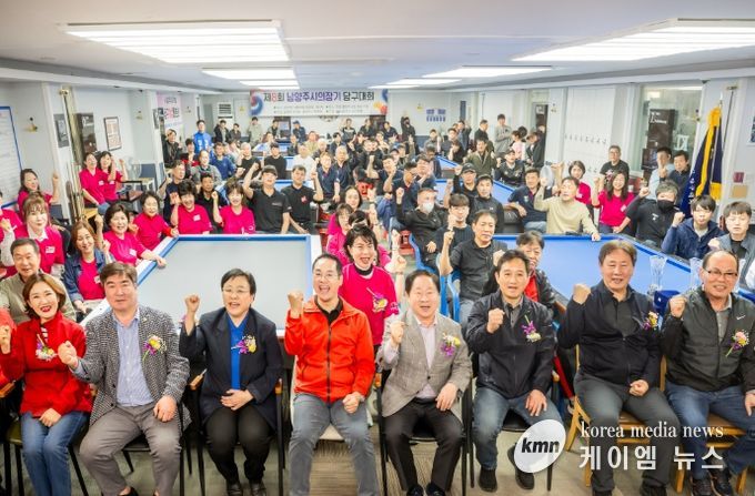 남양주시의회와 남양주시체육회가 주최하고 남양주시당구연맹이 주관한 이번 대회는 한근수 자치행정위원장을 비롯해 이경숙 복지환경위원장, 김지훈(국) 의원, 손정자 의원, 주광덕 시장, 남양주시 당구연맹 유재간 회장 및 관계자 등이 대회 개최를 축하하기 위해 함께 자리했다.