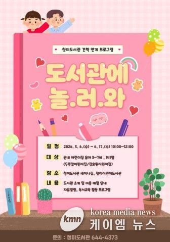 (케이엠뉴스) 이천시 청미도서관은 오는 5월 6일부터 6월 17일까지 관내 어린이집 유아를 대상으로 도서관 견학 연계 프로그램 ‘도서관에 놀.러.와’를 운영한다.