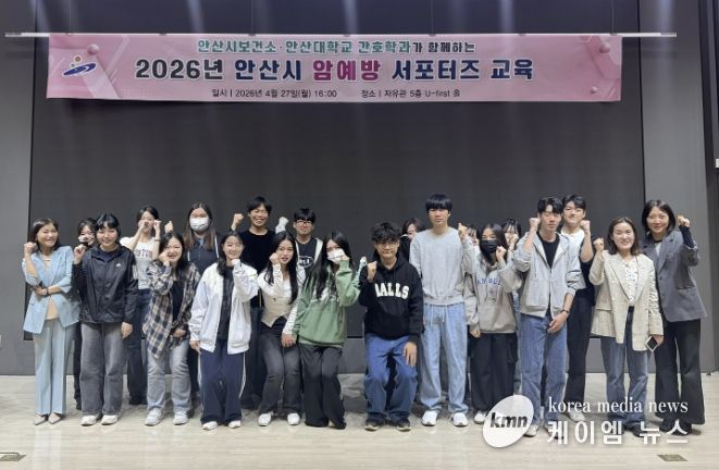 (케이엠뉴스) 안산시는 지난 27일 안산대학교 자유관 U-first 홀에서 ‘2026년 안산시 암 예방 서포터즈 발대식 및 교육’을 개최했다고 28일 밝혔다.