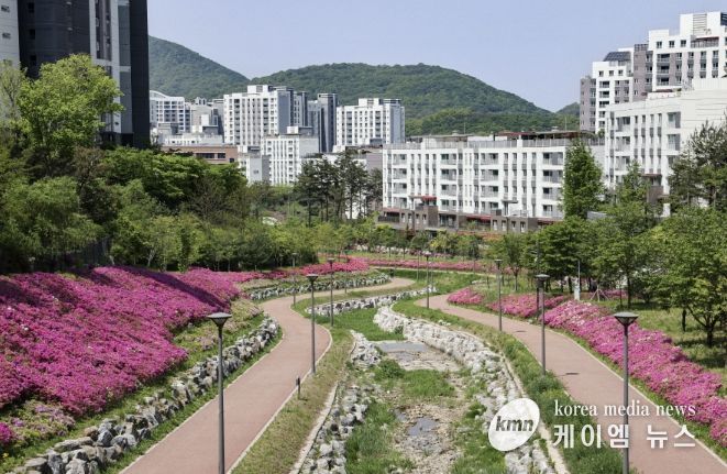 (케이엠뉴스) 의왕시 백운밸리 지역의 생태 소하천 ‘바라천’이 봄을 맞아 화사한 철쭉(자산홍)으로 물들었다. 총길이 약 1km에 이르는 이 산책로에는 분홍빛 철쭉이 줄지어 피어나며 방문객들에게 아름다운 풍경을 선사하고 있다.