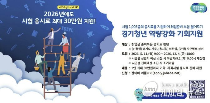 (케이엠뉴스) 고양특례시는 미취업 청년의 취업준비 부담을 완화하기 위한 ‘경기청년 역량강화 기회지원사업’이 오는 5월 11일 접수를 시작한다고 밝히며, 고양시 청년들이 적극 참여할 것을 당부했다.