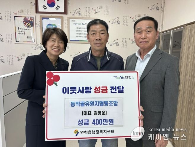 (케이엠뉴스) 동막골유원지협동조합은 지난 28일 오후 4시 연천읍행정복지센터 읍장실에서 이웃돕기 후원 성금 400만 원을 기탁했다.