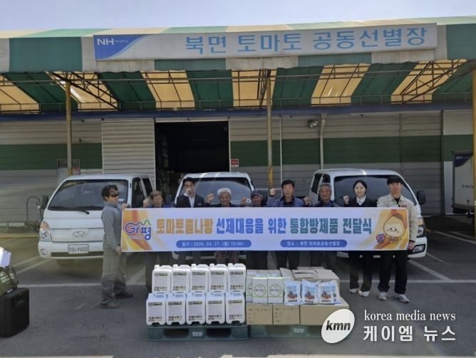 (케이엠뉴스) 가평군은 최근 북면 토마토 공동선별장에서 토마토 뿔나방 예방을 위한 통합방제물품 전달식을 가졌다.