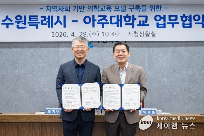 (케이엠뉴스) 수원특례시와 아주대학교가 지역사회에 기반을 둔 새로운 의학교육 모델을 구축하고, 미래 지역 의료인 양성을 위해 힘을 모은다.