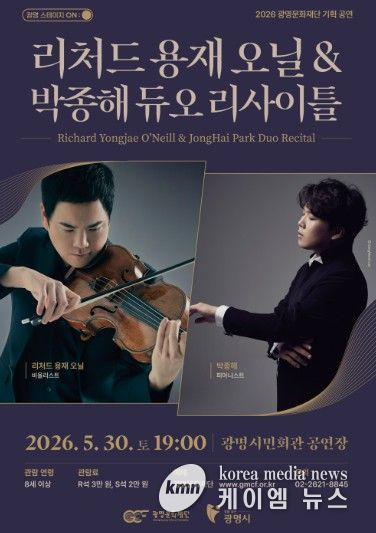 광명문화재단은 오는 5월 30일 오후 7시 광명시민회관에서 ‘리처드 용재 오닐&박종해 듀오 리사이틀’을 개최한다.