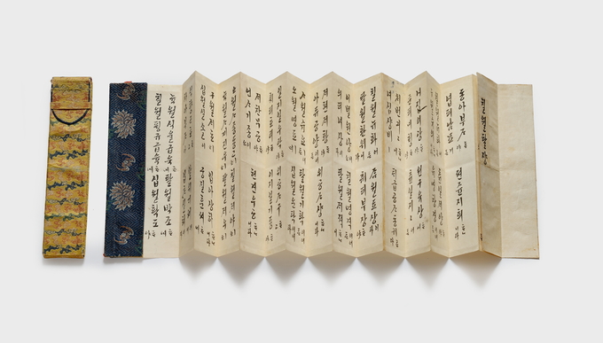 또 경기도 유형문화재 제325호 ‘빈풍칠월편’도 자세히 확인할 수 있다. 정조가 한글로 『시경』 빈풍 「칠월」편의 한자음을 쓰고 토를 단 첩이다. 정조가 남긴 한글 필적이 드문 편이라 귀중하게 여겨지는 자료다.