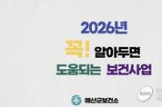 (케이엠뉴스) 예산군보건소는 2026년 새해를 맞아 군민에게 필요한 보건사업 정보를 알기 쉽게 전달하기 위해 보건사업 홍보영상을 제작했다고 밝혔다. 이번 홍보영상에는 군민 건강 증진을 위해 보건소에서 추진하는 다양한 사업 내용이 담겼다. 주요 내용은 △50세 이상 무료 대상포진 예방접종 △65세 이상 무료 폐렴구균 예방접종 △의료취약지 원격협진 사업 △정신건강 심리상담 바우처 사업 △치매환자 실종예방 지원사업 △난임 시술비 지원 △취약계층 건강관리 및 환자 병원 이송 사업 등이다. 특히 2026년 신규사업으로 △산후조리원 비용 지원사업 △임산부 진료 교통비 지원사업을 포함해 출산 가정의 경제적 부담을 덜고 의료 접근성을 높이는 사업도 소개됐다. 산후조리원 이용 비용은 최대 100만원까지 지원되며, 임신 중 병·의원 방문에 따른 교통비도 지원받을 수 있다. 보건소 관계자는 “이번 홍보영상을 통해 군민들이 보건소에서 제공하는 다양한 서비스를 쉽게 접하고 적극 활용하길 바란다”며 “앞으로도 군민의 건강한 삶을 위해 최선을 다하겠다”고 말했다.