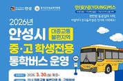 (케이엠뉴스) 안성시는 대중교통 이용이 불편한 지역 중·고등학생들의 안전하고 편리한 등·하교 환경 조성을 위해 학생전용 통학버스 ‘안(安)녕(YOUNG)버스’를 오는 3월 30일부터 본격 운행한다고 밝혔다. ‘안(安)녕(YOUNG)버스’는 ‘안성(安)’과 ‘젊음(YOUNG)’, 그리고 ‘밝은 인사(안녕)’의 의미를 담은 명칭으로, 학생들이 아침마다 밝고 안전하게 등교할 수 있도록 지원하는 데 목적이 있다. 이번 사업은 안성시와 경기도안성교육지원청이 공동으로 추진하는 협력사업으로, 관내 대중교통 불편지역 중·고등학생을 대상으로 운영된다. 총 5개 노선에 버스 7대를 투입하여 13개 학교 학생들이 공동으로 이용할 수 있도록 했다. 특히 학교별·요일별 수업 종료시간이 상이한 점을 반영하여 하교 시간대를 다양화하는 등 실질적인 통학 수요를 반영한 맞춤형 운행체계를 구축했다. 이를 통해 학생들의 대기시간을 줄이고 보다 효율적인 통학 환경을 제공할 계획이다. 이용요금은 안성시 시내버스 청소년 요금과 동일하게 적용되며, 환승 할인도 가능하다. 다만 학생 본인 명의의 교통카드를 사용해야 하며, 보호자 명의 카드