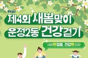 (케이엠뉴스) 파주시 운정2동은 오는 3월 28일 11시, 운정건강공원(가온초교 옆)에서 '제4회 새봄맞이 운정2동 건강걷기'를 개최한다. ‘새봄맞이 운정2동 건강걷기’는 올해 4회째로 봄을 맞아 만발한 꽃과 자연을 느끼며 운정2동의 공원 산책길을 걷는 행사다. 참여자들은 운정건강공원(가온초 옆)에서 출발해 산내공원을 경유해 약 3km의 구간을 걷는다. 별도의 사전 신청 없이 누구나 참여할 수 있다. 파주시립예술단의 활기찬 식전 공연을 시작으로 ‘가온한양대태권도시범단’, ‘하이줌바’등 공연과 다양한 체험 공간 등 다채로운 행사가 준비되어 가족과 함께 즐길 수 있는 자리가 마련됐다. 특히 이번 행사는 작년보다 체험 공간을 대거 확충하여 시민들에게 다양한 볼거리, 즐길 거리를 제공한다. 또한, 이번 걷기행사는 주민 중심의 걷기 문화를 확산하여 더욱 건강한 운정2동을 만들기 위해 파주보건소, 운정보건소와 협업하여 개최된다. 운정보건소는 현장 건강 홍보관을 운영하고 파주보건소는 걷기 홍보물 제공, 모바일 걷기 앱 ‘워크온’걷기 챌린지 참여를 독려하여 일상 속 걷기 실천을 유도한다. 파주시 ‘모바일 워크온