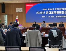 (케이엠뉴스) 충남도는 30일 문화·체육·관광 분야 정책의 완성도를 높이기 위한 ‘2026년 제1차 문화체육관광분과 정책자문위원회 회의’를 개최했다. 정책자문위원, 도 관계 공무원 등 50여 명이 참석한 가운데, 이번 회의는 주요 업무 추진 상황 보고, 토론, 질의응답 순으로 진행했다. 문화체육관광분과 정책자문위원회는 위원장인 엄진종 순천향대 교수를 비롯해 분야별 전문가 20명으로 구성·운영 중으로, 도 정책 실효성 향상을 위한 정책 제안과 자문 역할을 하고 있다. 이날 회의에선 △지역 문화예술 기반 확충 및 도립미술관 개관 준비 △문화유산 보존·활용 체계 고도화 △생활체육 활성화 및 체육 기반 확충 △관광 자원 연계 콘텐츠 강화 등 올해 중점 추진하는 문화·체육·관광 전 분야의 추진 전략을 공유했다. 아울러 정책자문위원들은 도의 정책 현황을 진단하고 내실 있는 정책 방향 설정을 위한 다양한 의견을 제시했으며, 실효성 있는 발전 방안 도출을 위해 의견을 나눴다. 조일교 도 문화체육관광국장은 “정책자문위원회의 제안과 의견 등을 검토·반영해 정책 성과를 극대화하고 도민이 체감할 수 있는