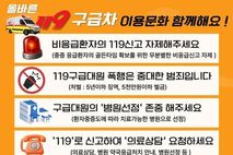 (케이엠뉴스) 충남소방본부는 119구급차의 효율적 운영과 응급환자의 골든타임 확보를 위해 올바른 119구급차 이용 문화 확산을 위한 홍보를 추진한다고 12일 밝혔다. 도 소방본부는 비응급 신고와 구급대원 폭행, 이송 병원 관련 민원 증가로 구급 현장 대응에 어려움이 많이 발생함에 따라 도민 인식 개선을 통해 보다 안전하고 효율적인 구급 서비스를 제공하고자 이번 홍보 활동을 전개한다. 주요 내용은 △비응급 상황에서의 119 신고 자제 △구급대원 폭행·폭언 근절 △환자 상태에 따른 구급대원의 이송 병원 선정 존중 등이다. 특히 구급대원이 환자의 중증도와 병원 수용 가능 여부 등을 종합적으로 판단해 이송 병원을 선정하는 만큼 이를 존중하는 성숙한 시민의식이 필요하다는 점을 적극 홍보할 계획이다. 이영주 도 소방본부 119대응과장은 “비응급 환자가 119구급차를 이용하면 긴급환자 대응이 지연될 우려가 있고 구급활동 중 발생하는 폭행·폭언은 현장 대원의 안전을 위협하고 대응력을 저해하는 주요 요인”이라며 “119구급차는 생명이 위급한 환자를 위한 공공자원인 만큼 비응급 상황에선 가까운 병의원을 이용하고 구급
