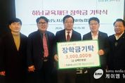 (케이엠뉴스) NH농협은행 하남시지부는 하남시 지역인재 양성을 위해 하남교육재단에 장학금 3백만원을 기탁했다. NH농협은행 하남시지부는 하남시 인재 육성을 위해 12년동안 꾸준히 장학금을 지원하고 있으며, 이번 기탁금은 하남시 학생들의 학업지원에 활용할 예정이다. 이석표 지부장은“지역 학생들의 성장과 미래를 응원하는 마음으로 장학금을 전달했다”며 “앞으로도 지역인재 양성을 위한 다양한 지원을 이어가겠다”고 말했다. 이현재 시장(하남교육재단 이사장)은 “NH농협은행 하남시지부의 꾸준한 관심과 후원에 감사드린다”며 “기탁금이 학생들의 꿈을 키우는 데 도움이 되도록 소중히 사용하겠다”고 밝혔다. 하남교육재단은 관내 초·중·고등학생들을 대상으로 장학사업을 비롯해 캠퍼스 투어, 기업체험, 진로·진학 프로그램, 학부모 교육 등 다양한 교육 지원 사업을 운영하고 있으며, 매년 약 3만여명의 학생들이 교육서비스를 제공받고 있다.