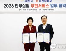 (케이엠뉴스) 이천시는 고독사 및 사회적 고립 문제 해결을 위한 선제적 대응체계를 구축하며 복지 행정 역량을 다시 한번 입증했다. 행정안전부가 주관하고 전국 지방자치단체를 대상으로 진행한 ‘안부살핌 우편서비스’ 공모사업에 최종 선정됐다고 밝혔다. ‘안부살핌 우편서비스’는 우편서비스를 활용해 고독사 위험 가구와 취약계층 등 위기가구의 생활 상황을 정기적으로 확인하고 복지 사각지대를 예방하는 사업이다. 우편물 전달 과정에서 생활 징후를 확인하고 이상 징후가 발견되면 지자체와 연계해 신속하게 대응하는 방식으로 운영된다. 이천시는 사업 추진을 위해 2026년 3월 12일 이천우체국과 업무협약을 체결하고 우체국 인적 네트워크를 활용한 촘촘한 안부 확인 체계를 구축했다. 이를 통해 지역 내 고독·고립 위험이 있는 가구를 더욱 체계적으로 발굴하고 지원할 계획이다. 앞으로 서비스 대상자를 면밀히 선정하고 정기적인 안부 확인을 통해 위기가구 관리 체계를 강화하는 등 시민이 체감할 수 있는 밀착형 복지 행정을 추진할 방침이다. 김경희 시장은 “안부살핌 우편서비스를 통해 지역 내 취약계층을 더욱 촘촘하게 살필 수 있을