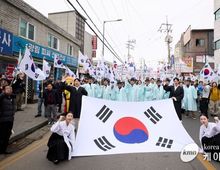 (케이엠뉴스) 양주시가 1일 가래비3·1운동순국기념사업회 주관으로 양주시 광적면 소재 3·1운동 기념공원에서 '제107주년 양주 가래비 3·1운동 기념식 및 재연행사'를 개최하고 순국선열의 숭고한 희생정신을 기렸다. 이날 행사에는 양주시와 양주시의회, 경기북부보훈지청, 동두천양주교육지원청, 농협은행 양주시지부 등 기관 관계자와 독립유공자 유가족, 보훈단체 관계자, 사회단체장, 시민 등 600여 명이 참석했다. 행사는 국민의례를 시작으로 독립선언서 낭독, 기념사, 삼일절 노래 제창, 만세삼창, 기념공연, 거리만세행진 순으로 진행됐다. 기념 공연으로는 1919년 가래비 만세배미 현장을 재연한 창작 뮤지컬 ‘기억하라! 그날!’과 양주시립합창단 공연이 이어졌다. 시민들은 가래비 일대에서 전개됐던 만세운동을 재연하는 거리만세행진에 참여해 태극기를 흔들며 “대한독립 만세”를 외쳤다. 행사장에는 관내 독립운동가를 알리는 전시와 함께 시민이 태극기에 순국선열을 향한 감사와 소망의 메시지를 남기는 ‘시민 참여 보훈문화행사’도 마련됐다. 완성된 태극기는 양주시청 3층 갤러리에 전시될 예정이다. 강수현 양