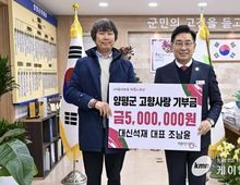 (케이엠뉴스) 양평군은 지난 26일 군청 군수 집무실에서 대신석재 조남윤 대표의 고향사랑기부금 전달식을 개최했다고 밝혔다. 조남윤 대표는 2024년 300만 원 기부에 이어 2025년에도 500만 원을 기부하며 2년 연속 고향사랑기부에 동참했다. 특히 고향사랑기부 답례품으로 받은 포인트 150만 원을 지역화폐로 전환해 취약계층에 재기부하며 고향사랑의 의미를 한층 더했다. 전진선 양평군수는 “2년 연속 양평군을 잊지 않고 고향사랑기부에 참여해 주신 데 깊이 감사드린다”며 “기부자의 뜻에 따라 기부금은 군민 복지 증진과 지역 발전을 위해 소중히 활용하겠다”고 말했다. 한편, 양평군은 고향사랑기부금을 활용해 화재 취약지역 대형 소화기 보급 사업과 추읍산 진달래 관광자원화 사업 등을 추진하며 군민 복지 증진과 지역공동체 활성화에 기여하고 있다.