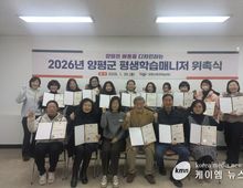 (케이엠뉴스) 양평군은 26일 평생학습센터에서 ‘2026년 양평군 평생학습매니저 위촉식’을 성황리에 개최했다. 군은 이번 위촉식에서 평생학습매니저 역량 강화 연수를 이수하고 활동 신청서를 통해 지속적인 참여 의사를 밝힌 인원을 대상으로, △학습 여행 운영 참여 실적 △회의 참여도 △관련 사업 기여도 등 활동 전반의 성실성을 평생학습매니저 평가표에 따라 종합적으로 심사해 최종 17명의 평생학습매니저를 공식 위촉했다. 위촉된 평생학습매니저들은 앞으로 1년간 지역 평생학습 활성화를 위해 주민의 학습 참여를 독려하고, 평생교육 프로그램 기획·운영 지원, 학습자 상담 및 만족도 조사 등 현장 중심의 역할을 수행하게 된다. 이날 위촉식은 평생교육 관계자와 위촉자들이 참석한 가운데 △위촉장 수여 △향후 활동 계획 공유 △평생학습 발전 과제 논의 등의 순서로 진행됐다. 위촉된 매니저들은 온행복센터(읍·면·동 평생학습센터)와 우리 동네 학습공간을 중심으로 지역 맞춤형 학습 콘텐츠 개발·운영, 학습자 요구 조사, 학습 지원 체계 구축 등에 참여할 예정이다. 전진선 양평군수는 “평생학습매니저는 주민의 삶과 평생학습을