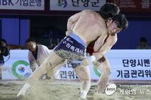 (케이엠뉴스) 양평군청 직장운동경기부 씨름단 소속 김성용 선수가 단양온달장사씨름대회 태백급에서 2위를 차지하며 뛰어난 기량을 입증했다. 김성용은 지난 25일 열린 태백장사 결정전에 출전해 치열한 승부 끝에 준우승을 차지했다. 8강전에서는 박정우(MG새마을금고씨름단)를 상대로 1회전을 내준 뒤, 2회전에서 밀어치기 기술로 승부를 원점으로 돌렸고, 3회전에서는 빠른 안다리 기술을 성공시키며 준결승에 진출했다. 준결승에서는 허선행(수원특례시청)을 상대로 접전을 펼쳤다. 1회전에서 동시에 넘어지는 상황이 발생했으나, 비디오 판독 결과 상대의 무릎이 먼저 모래판에 닿은 것으로 확인돼 김성용이 선취점을 얻었다. 이어진 2회전에서도 빗장 걸기 기술로 상대를 제압하며 결승에 올랐다. 결승전에서는 문준석(수원특례시청)과 5판 3선승제로 맞붙었다. 김성용은 2회전에서 밀어치기로 한 점을 따내며 추격에 나섰으나, 접전 끝에 아쉽게 패하며 준우승으로 대회를 마무리했다. 전진선 양평군수는 “김성용 선수가 보여준 투지와 경기력은 매우 인상적이었다”며 “앞으로도 꾸준한 훈련과 지원을 통해 더 큰 성과를 낼 수 있도록 최선을