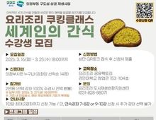 (케이엠뉴스) 의정부시는 의정부 전통시장의 신선한 식재료를 활용해 이색적인 간식을 만들어 보는 요리조리 쿠킹클래스 ‘세계인의 간식’ 참여자를 모집한다. 이번 요리 교실은 의정부동 구도심 상권 재생 사업의 일환으로 주민 참여형으로 기획됐다. 특히 지역 대학과 요리 전문가들과의 협력을 통해 교육의 전문성을 한층 높였다. 주요 교육 내용은 ▲두바이 쫀득 쿠키(두쫀쿠) ▲스모어 쿠키 및 휘낭시에 ▲샹그리아 및 화과자 ▲티라미수 & 판나코타 등 남녀노소 누구나 즐길 수 있는 다양한 간식 만들기 과정으로 구성됐다. 모집 대상은 참여를 희망하는 의정부 시민이며, 신청은 포스터 내 QR코드나 링크를 통해 가능하다. 세부 사항은 의정부시도시재생지원센터 블로그를 통해 확인하거나 요리조리 도시재생현장지원센터로 문의하면 된다. 시 관계자는 “이번 프로그램은 요즘 유행하는 이색 간식을 접목해 시민들에게 새로운 미식 문화의 경험을 제공할 예정”이라며 “앞으로도 구도심 상권과 식문화를 연계한 우수한 콘텐츠를 지속적으로 발굴해 지역 활성화를 도모하겠다”고 말했다.