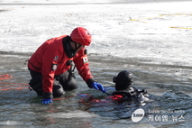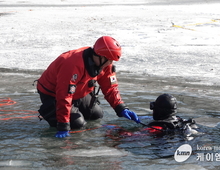 안성소방서(서장 장진식)는 겨울철 수난사고 대응능력 강화를 위해 안성시 성은저수지에서 동계수난구조 합동훈련을 실시했다고 밝혔다. 이번 훈련은 동절기 저수지 및 수변 지역에서 발생할 수 있는 각종 수난사고에 대비하기 위해 마련됐다. 동계 수난사고는 저수지 결빙과 낮은 수온 등으로 구조활동이 어려워 신속하고 체계적인 대응이 무엇보다 중요하다. 특히 얼음 붕괴로 인한 익수 사고나 수중 차량사고 발생 시 구조대원의 안전 확보와 정확한 역할 분담이 이루어지지 않으면 인명 피해로 이어질 가능성이 크다. 안성소방서는 실제 상황을 가정한 실전형 훈련을 통해 현장 대응 능력을 점검하고 협업 체계를 강화했다. 겨울철 수난사고 발생을 가정해 구조대원의 장비 숙련도 향상과 현장대응 절차 점검에 중점을 두고 진행됐다. 구조대원은 ▲소방헬기를 활용한 빙상 인명구조 ▲장비를 이용한 얼음절삭 ▲수중드론을 활용한 인명검색 ▲얼음 밑에서의 인명구조 등 사고 발생 시 신속한 상황 판단과 역할 분담을 통해 효율적인 구조 활동이 이루어질 수 있도록 훈련했다. 또한 혹한기 환경에서 구조대원들의 안전을 확보하기 위한 개인 보호장비 착용법과 사고 예방 교육도 병행됐다. 훈련기간 중 윤성근 경기도의원이