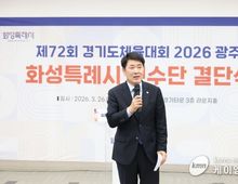 (케이엠뉴스) 화성특례시의회는 26일 화성종합경기타운 3층 라운지홀에서 열린 제72회 경기도체육대회 화성시 선수단 결단식에 참석해 선수단을 격려하고 4연패 달성을 위한 결의를 다졌다. 이날 행사에는 배정수 의장을 비롯해 김종복 문화복지위원장, 송선영·이용운 의원, 화성시체육회 임원과 종목단체 관계자, 선수단 등 약 150여 명이 참석했다. 이날 결단식은 경기도체육대회 출전을 앞둔 선수단의 사기를 높이고 각오를 다지는 자리로 마련됐다. 화성특례시 선수단은 오는 4월 16일부터 18일까지 광주시 일원에서 열리는 제72회 경기도체육대회에 출전한다. 육상, 수영, 축구 등 27개 종목에 참가해 종합우승 4연패에 도전한다. 배정수 의장은 “묵묵히 쌓아온 훈련의 시간과 노력을 믿고 끝까지 당당하게 경기에 임해주시기 바란다”며 “선수 여러분의 땀과 투혼이 화성특례시의 자부심”이라고 말했다. 이어 “화성특례시의회도 선수들이 오직 경기에 집중할 수 있도록 체육 환경 조성과 지원에 최선을 다하겠다”며 “4연패 달성을 진심으로 기원한다”고 덧붙였다. 화성특례시의회는 선수들이 충분한 기량을 펼칠