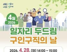 (케이엠뉴스) 수원특례시는 4월 28일 오후 2시부터 3시까지 선경도서관 강당에서 ‘4월 일자리 두드림 구인·구직의 날’을 개최한다. 케이에스팩 주식회사, ㈜한성엠에스, ㈜에스텍플러스, 주식회사 후레쉬서브, 휴먼스토리에프에스㈜ 등 5개 업체가 참여해 화장품 비누제품 생산포장·검수원, 택배물품 분류원, 제조·식품 분야 단순 종사원, 단체급식 보조원 등 총 18명을 채용한다. 참여 구인 기업은 구직자와 1대1 채용 면접을 한다. 수원시는 취업 정보를 제공하고, 이력서·면접 클리닉을 운영하는 등 참가자들을 지원한다. 일자리를 구하는 수원시민은 누구나 참여할 수 있다. 수원일자리센터가 주관하는 ‘일자리 두드림’은 취업에 어려움을 겪는 구직자와 인재 채용을 원하는 기업을 연결해 주는 채용 행사다. 올해는 시민들이 쉽게 찾을 수 있는 도서관과 연계‧협업해 행사를 열고 있다. 수원일자리센터는 일자리 두드림 외에도 직업상담사가 한 달에 두 차례(둘째·넷째 화요일 오후 1~6시) 4개 구 지정도서관을 찾아가는 ‘찾아가는 일자리 상담’을 운영해 구직자들에게 취업 정보를 제공하고, 1대1 취업 상담, 취업 알선을 한다