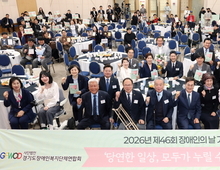 김진경 경기도의회 의장(더민주․시흥3)은 20일 수원 경제과학진흥원 광교홀에서 열린 ‘제46회 장애인의 날’ 기념식에 참석해 장애인 인권과 복지 향상의 의미를 되새겼다. 이날 기념식은 ㈔경기도장애인복지단체연합회(회장 이영재)가 주최·주관했으며, 장애인 가족과 단체 관계자 등 200여 명이 참석한 가운데 장애인 인권헌장, 축사, 공연 등으로 진행됐다. 김 의장은 장애인 복지 증진에 기여한 유공자들에게 경기도의회의장 표창을 수여하며 감사와 격려의 뜻을 전했다. 김 의장은 축사를 통해 “‘당연한 일상, 모두가 누릴 수 있도록’이라는 기념식 슬로건이 우리 사회가 지향해야 할 기준”이라며 “누군가에게는 당연한 하루가 또 다른 누군가에게는 여전히 높은 벽이 되고 있는 현실을 함께 허물어가야 한다”고 강조했다. 이어 “경기도의회는 말뿐인 응원이 아니라, 여러분의 삶에 실질적인 도움이 되는 정책을 고민하고 실천해 나가겠다”며 “전국에서 가장 많은 장애인이 거주하는 경기도의 입지에 걸맞게 제도의 빈틈을 살피고, 체감할 수 있는 변화를 앞장서 일구겠다”고 밝혔다.