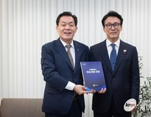 (케이엠뉴스) 이재준 수원특례시장이 김민석 국무총리에게 수원의 미래 성장 기반 구축을 위한 핵심 현안이 실현될 수 있도록 정부 차원에서 적극적으로 지원해 달라고 건의했다. 이재준 시장은 16일 수원컨벤션센터를 찾은 김민석 총리를 만나 ▲수원 군공항 이전으로 ‘민·군 통합, 경제국제공항’ 국가전략 사업 추진 ▲국가 첨단산업 연구특구, 수원경제자유구역(K-실리콘밸리) 지정 ▲정조대왕능행차 국가대표 K-축제 지정·K-컬처로드 집중 육성 등 수원시 핵심 현안을 담은 건의문을 전달하고, 정부의 전폭적인 지원을 요청했다. ‘민·군 통합, 경제국제공항’ 국가전략사업은 국무총리실 산하 ‘수원 군공항 이전 갈등조정협의체’ 구성·운영, 수도권 주택 공급, 광역 교통망 확충을 연계해 종합적으로 추진할 것을 건의했다. ‘국가 첨단산업 연구특구, 수원 경제자유구역 지정’과 관련해 수원경제자유구역은 ‘연구는 수원에서, 제조는 지방에서’라는 국가 균형발전 모델을 실현할 수 있는 최적지라고 설명하며 수원경제자유구역이 지정되도록 정부가 지원해달라고 요청했다. 또 정조대왕 능행차가 글로벌 축제로 발전할 수 있도록 ‘국가대표 K-축
