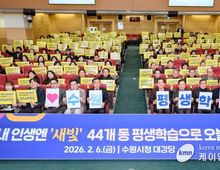 (케이엠뉴스) 이재식 수원특례시의회 의장은 2월 6일 오후, 수원시청 대강당에서 열린 '2026 수원 평생학습 미리보기' 시민 설명회에 참석했다. 이날 설명회에는 박영태 의원(더불어민주당, 행궁·지·우만1·2·인계)과 현경환 의원(국민의힘, 파장·송죽·조원2)도 함께했다. 이번 자리는 44개 동 평생학습센터 출범을 알리고, 2026년 수원시 평생학습 정책과 주요 사업을 시민과 공유하기 위해 마련됐으며, 시장과 동 주민자치회장, 시민 등 약 300여 명이 참석했다. 행사에서는 동 평생학습센터 현판 전달식과 기념공연이 진행됐고, 이어 평생학습 정책과 동 단위 학습센터 운영 방향, 시민 참여형 프로그램이 소개됐다. 이재식 의장은 “동네 가까이에서 평생 배우며 삶의 다음 단계를 준비할 수 있는 환경은 시민들에게 큰 힘이 된다”며, “의회도 평생학습센터가 마을의 활기찬 배움 공간으로 자리 잡을 수 있도록 적극 지원하겠다”고 말했다.