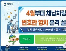 (케이엠뉴스) 평택시는 자동차세 및 차량 관련 과태료를 상습적으로 미납한 체납 차량을 대상으로 오는 4월부터 번호판 영치 단속을 본격 실시한다고 밝혔다. 이번 단속은 지난 3월 한 달간 운영된 ‘사전예고 및 자진납부 안내 기간’이 종료됨에 따라 시행되는 후속 조치다. 시는 그동안 카카오 알림톡 등 다양한 비대면 채널을 통해 체납 사실을 안내하고 자진 납부를 유도한 결과, 사전 예고 기간 동안 총 5076명, 약 11억 5900만 원의 자동차세 체납액이 징수되는 성과를 거뒀다. 그럼에도 불구하고 여전히 납부하지 않은 고액·상습 체납자를 대상으로 강력한 행정 제재에 나설 방침이다. 집중 단속 대상은 자동차세를 3회 이상 체납했거나, 2회 이상 체납과 동시에 지방세·세외수입 체납액이 일정 금액 이상인 고액·상습 차량이다. 이번 단속은 관내 등록 차량은 물론 타 지자체 등록 차량에 대해서도 ‘징수촉탁’ 제도를 활용해 예외 없는 단속을 진행한다. 특히 단속부서들의 실시간 체납 정보 공유 시스템을 가동해 현장 단속의 효율성을 높이고, 영치된 차량은 체납액을 전액 납부해야만 번호판을 반환받을 수 있도록 엄격히 관리할 계획이다. &nbs