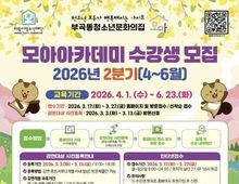 (케이엠뉴스) (재)의왕시청소년재단 부곡동청소년문화의집이 청소년들의 창의성과 실천 역량을 키우는 배움의 장을 조성하기 위해‘2026년 모아아카데미 2분기(4~6월)’ 수강생을 모집한다. 이번 과정은 ▲창의 ▲미디어 ▲문화창작 3개 분야로 구성되어 있으며, 브레인큐브 ·보드게임·웹툰·ITQ 자격증 등 청소년들의 관심을 사로잡을 다양한 프로그램으로 구성됐다. 총 8개 프로그램 13개반이 이번 강좌로 개설되며, 부곡동청소년문화의집은 청소년들이 자신의 흥미와 진로 방향에 맞춰 주도적으로 학습을 선택하고 경험할 수 있도록 프로그램을 체계적으로 구성했다. 아울러, 강좌 특성에 맞춘 맞춤형 운영을 통해 참여 중심의 수업 환경을 마련하고, 청소년들이 스스로 배우고 성장하는 과정을 경험할 수 있도록 했다. 강좌의 신청은 3월 17일부터 3월 27일까지 온라인(홈페이지)로 하거나 방문으로 가능하다. 아울러, 수강료 감면 혜택을 희망하는 청소년은 사전등록이 필요하다. 하반기 감면 사전 등록 기간은 3월 13일까지이며, 최근 3개월 이내 발급된 관련 증빙 서류를 지참해 부곡동청소년문화의집으로 방문 등록해야